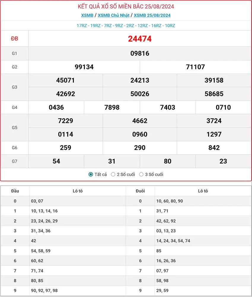 3.Chốt Lô Miền Bắc Đặc Biệt Ngày 25-08-2024.